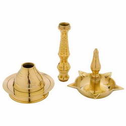 - This Vilakku is adorned with stem idol on top.
