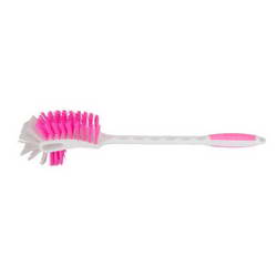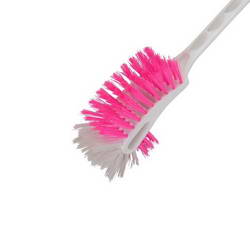 - This Letrine Brush has a long and sturdy plastic handle.